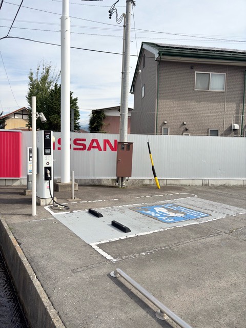 [普通充電器] コンセントは店舗の営業時間内のみお使いいただけます。 日産車限定。 スタッフに要申し出。 試乗車・修理車の充電が優先となります。