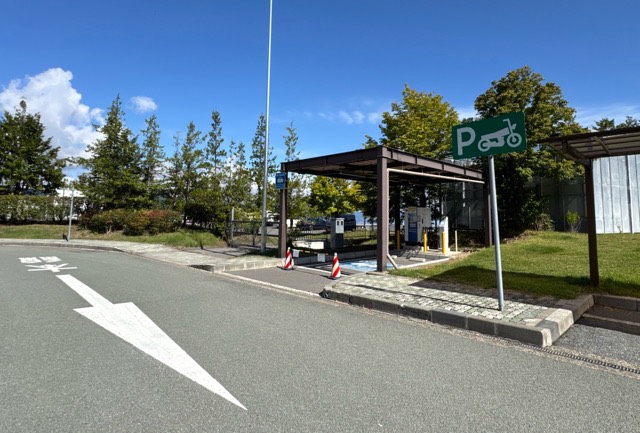 施設からは少し離れた、出口ランプの手前にあります。 屋根付きなので雨天は助かります。