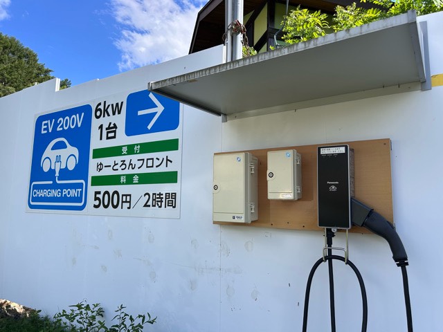 第2駐車場入ってすぐ、道路沿いにあります 6kW、500円/2時間、フロントにて受付