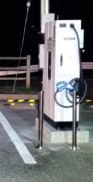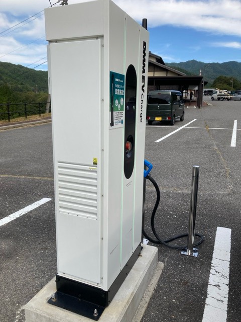 最近できた DMM の充電設備です 道の駅の入り口から左側にあります 道の駅の建物から少し離れていますので 雨風が強い時はちょっと不便な場所にありますね。