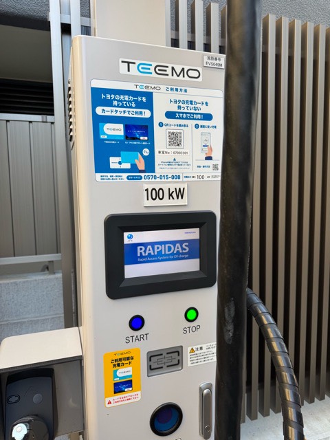 JFEテクノス製100kW器と50kW器です。eMP加入カードでは使えず、TEEMOカードorEV・PHV充電サポートメンバーorビジターでの充電になります。販社敷地入ると通路に設置されてます。写真上段は通りから、下段は裏通りからです。