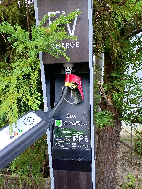 マイプラゴアプリをダウンロードして、フロントで施設コードを教えてもらわないと使えません 1台のみの設置で料金は15分55円で4kWでした。プラゴアプリから料金が請求されます。充電ケーブルも持参が必要です 宿泊予約時に予約しないといけません。 予約すれば占有して使えます。 宿泊者専用です