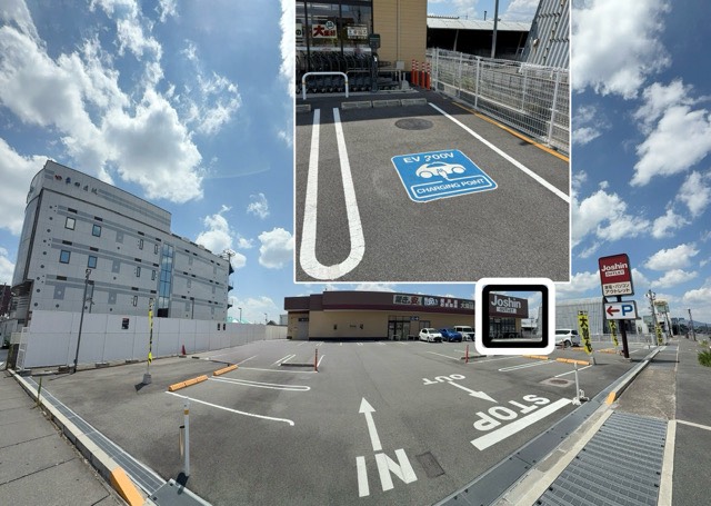 建物に向かって右側の店舗の入り口近辺にあります。写真追加 ここは1台ですが6kWでの無料はありがたいです。ジョーシンでの買い物もつい一品足してしましますね。