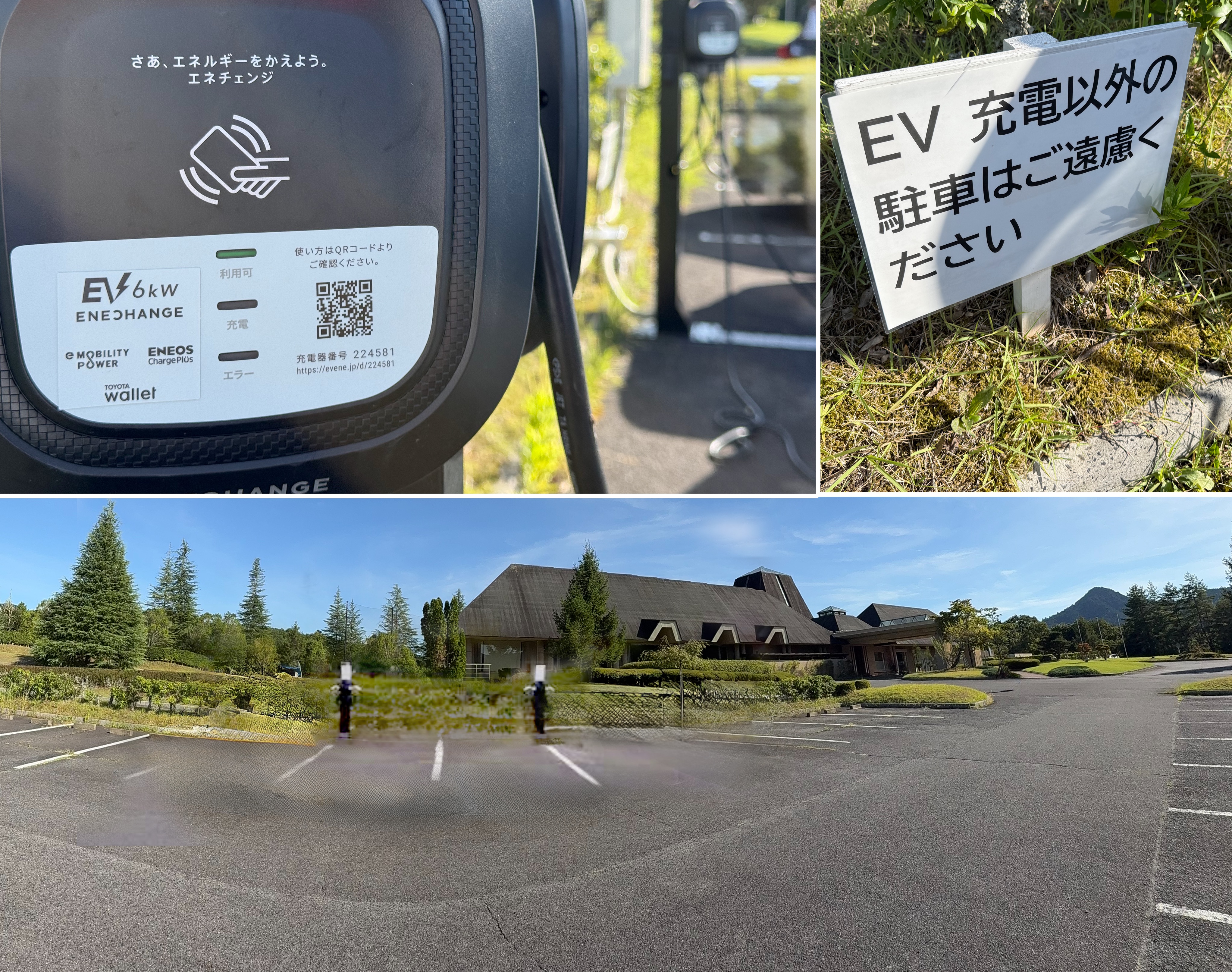 クラブハウスに近い列の奥寄りにあります。 後ろに「EV充電以外の駐車はご遠慮ください」との看板ありでした、4台中3台が充電されており、活用されていると感じました。 充電器番号は右から若い順です。
