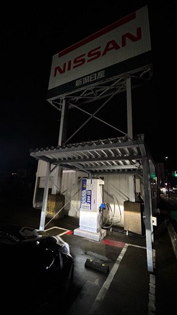 国道沿いに日産販売店が並んでいるので充電待ちもありませんでした。