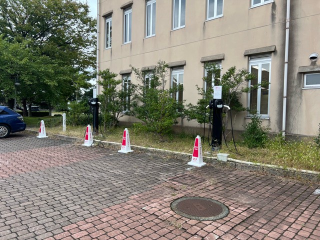 設置場所:第2駐車場 最大出力6kW 施設の電気容量により一時的に充電器の出力が変動する場合があります。