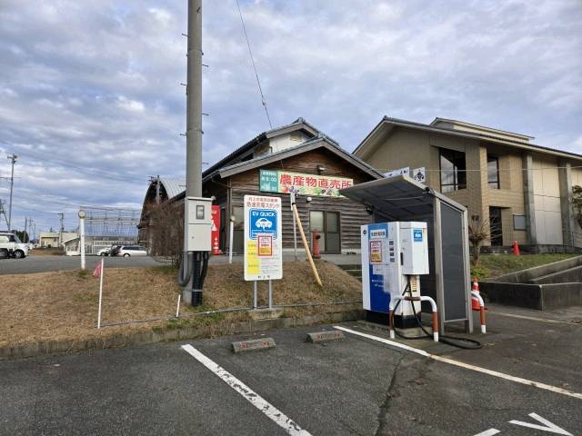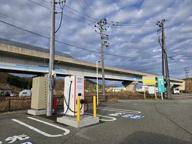 店舗正面から見て駐車場の右端にあります。 出力が150kWと高く、高速のインターにも近い便利な充電スポットです。