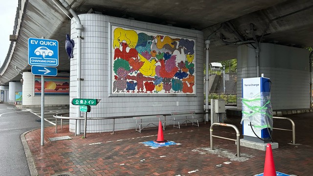 営業時間は0930から1700まで。隣のレストピアというレストランで受付が必要で、ブレーカーを入れてくれる。制限時間30分、出力は自分が充電したときは37kWだったので、44kWタイプと思われます。