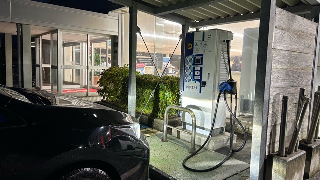 24時間使える急速充電器があります。 近くにローソンがありますが結構歩きます。