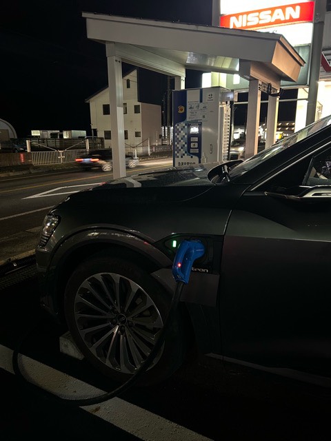 テスラの充電は変換プラグ等なしでできました。一晩で満充電でき助かりました。