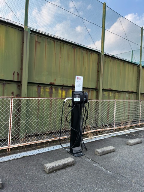 敷地に入って進むと奥にあります。 コーンの設置は1つ以上、充電稼働率のバランスに良いぐらいの数はあった方がいいと思います。