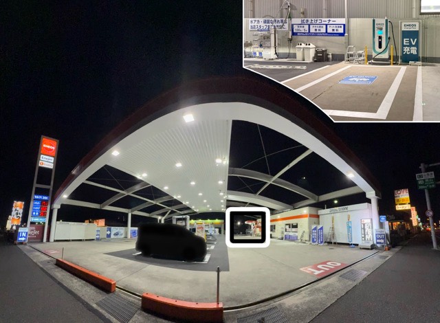 敷地に入ってすぐ見えています。 調子が良くなさそうですが、インターフォンで調子が悪い旨と伝えると直してくれて充電できるようです。 近くにエネオスチャージもあります。