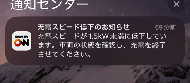 電欠間近でやっとたどり着いた。が、何度も充電されず、機械を変えてやっと出来たと思ったら2.2kw充電したあたりから出力低下で止まってしまった(泣)