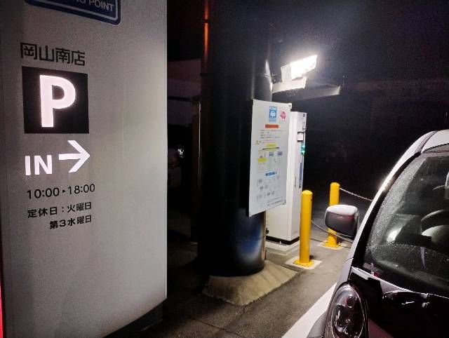 EV用CHAdeMO充電設備は、三菱の大きなサインポール脇に設置されています。 12/29(月)1時台にアイ・ミーブXで充電を行ったところ、設備最大の125Aで充電が始まりました。 近くにファミリーマートも有るので、往復移動を含めて最大30分の範囲内でちょっとした買い物なども出来ます。