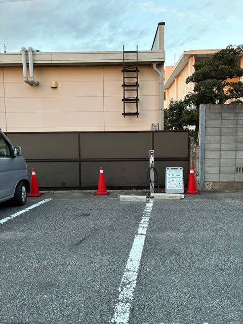 道路から見て、左側の駐車場にあります。文書と写真追加 24時間使えるので、値段が納得できれば近隣の基礎充電になり得るのかもしれません。