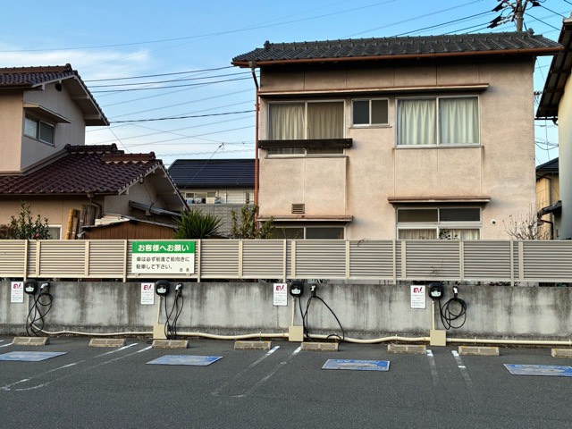 駐車場比較的広くEV表示もあります。 道路側じゃなく、民家側です。