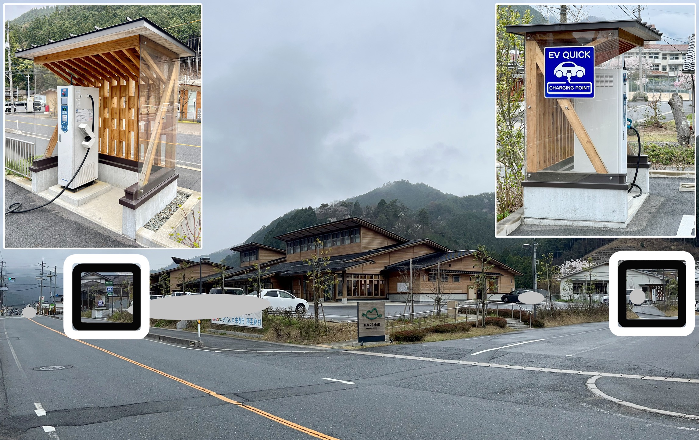 役場の奥にある方の充電器を使用しました。 機器に問題は有りませんが蜂の巣が2箇所ありますのでご注意下さい。