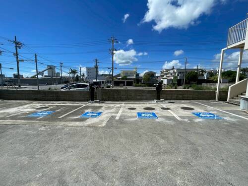 ホテル裏の提携駐車場。入口入って右手奥に2器設置されています。 1台分の駐車エリアはパイロンが設置され、使用中止となっていました。ホテル側で予約分を空けているのかもしれません。