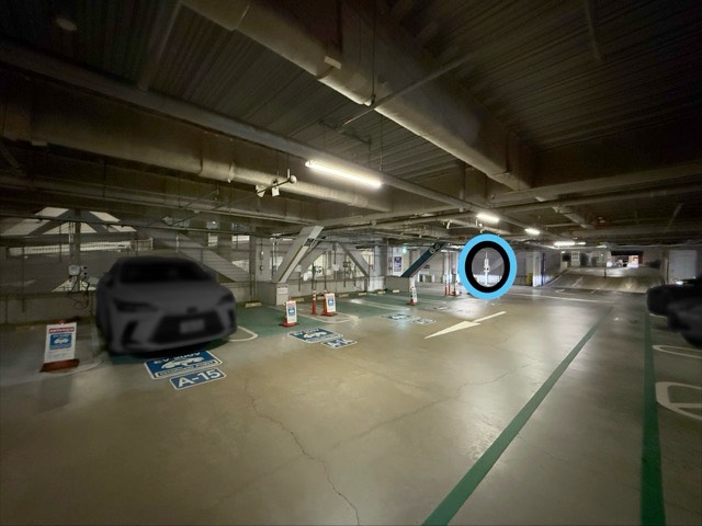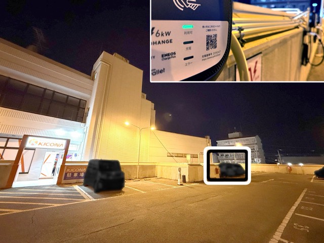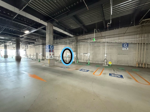 立体駐車場の6階Cゾーンにあります。 コントローラーは青丸のところにあります。 エネオスの充電器に更新されていました。