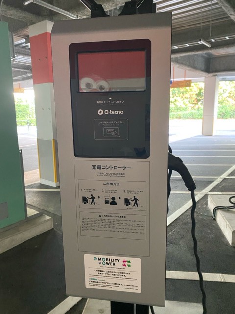 駐車料金所で充電したい旨を伝えると案内してもらえます。充電器のところにはスタッフが待機してくれていますので、はじめてでも安心して充電できます。 満充電になっても車を移動する必要も無いので、 「ゆっくり楽しんでくださいね!」と案内されました。
