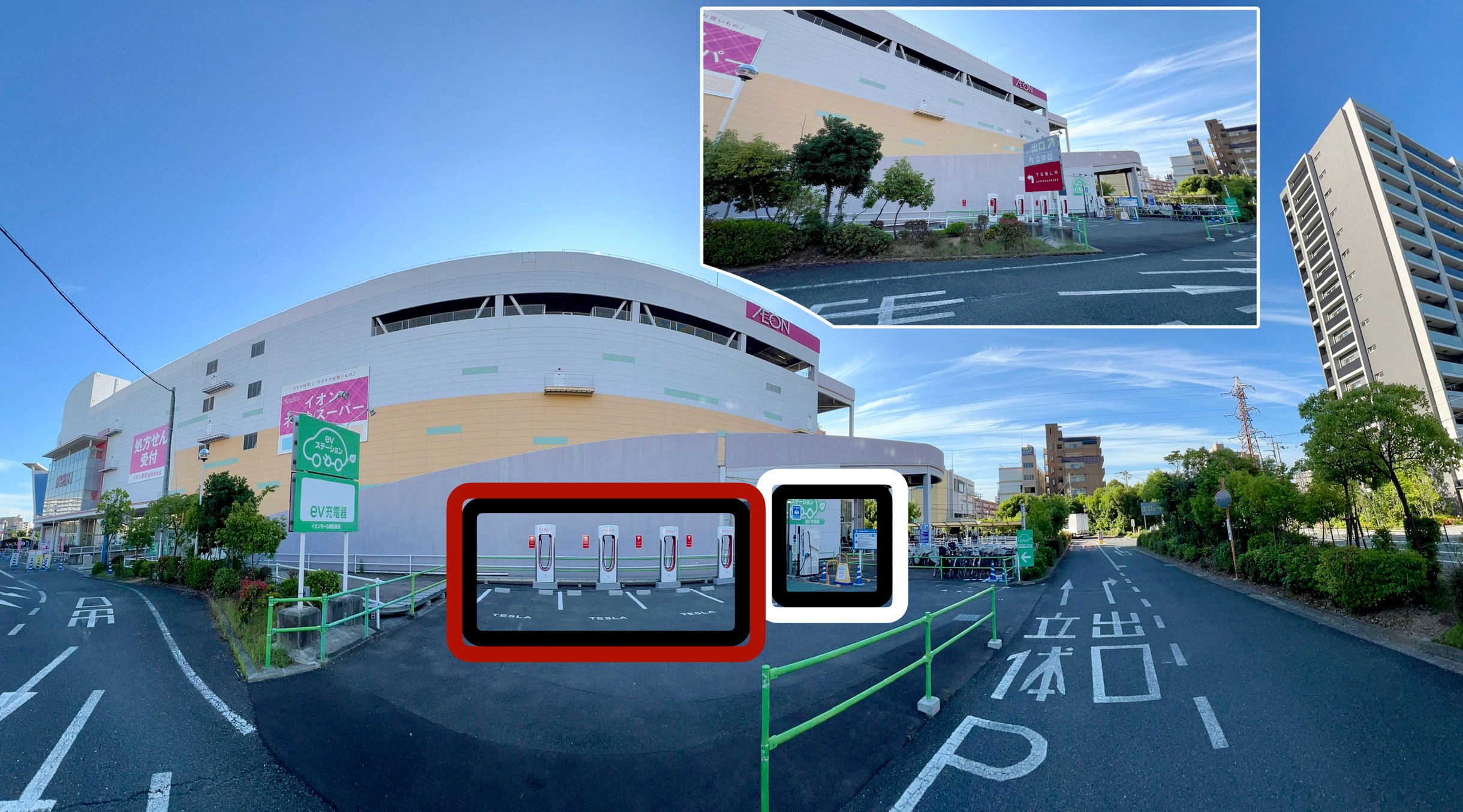 設置場所:イオンモール鶴見緑地平面駐車場 東入口左スロープ脇 スーパーチャージャーV3です。 ★データチームより★ 最大出力250kWは1台で充電した場合の参考値です。