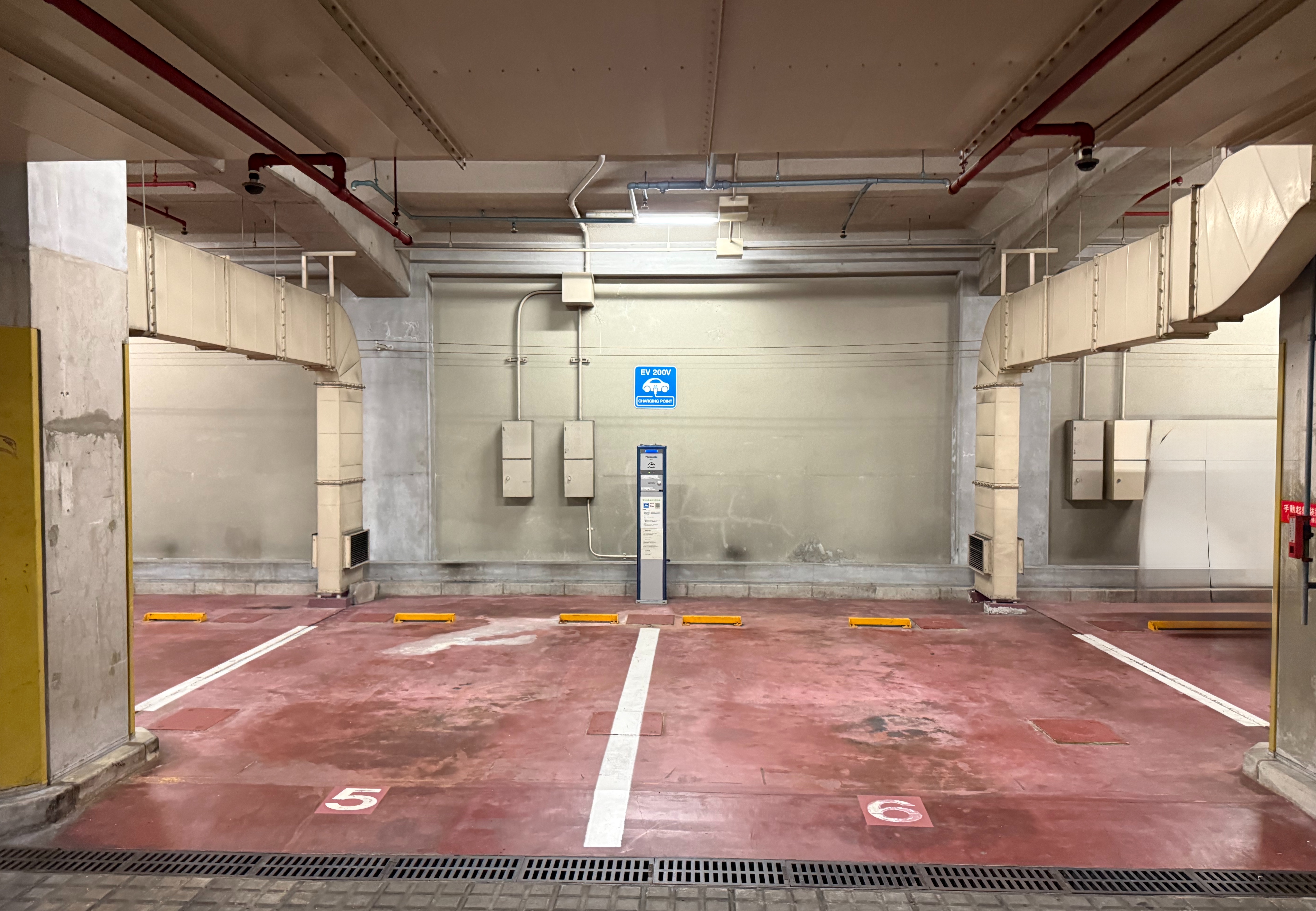 地下3階にあります。パナソニックの3kWコンセントです(充電ケーブル要持ち込み)1時間程度を限度にしてくださいと記載があります。暗証番号は特に必要ありませんでした。