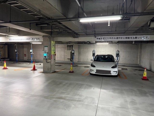 充電に使っていない車でほぼいっぱいで、なんとか1台分だけ空いていました