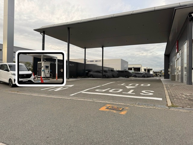 祝祭日24時間[急速充電器] 90kWの充電器が1基(2台同時に充電可)あります。 ★データチームより★ 最大出力90kWは、お車が対応しており、かつ1台で充電した場合の参考値です。 [普通充電器] コンセントは店舗の営業時間内のみお使いいただけます。 日産車限定。