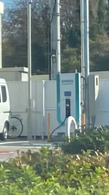 道路から見て右側の道路寄りにあります。 編集で消していますが、充電していない車が止まっていました。お店の人に言えば移動していただけるかもしれませんが、やはり違うお店に行ったほうが早いと思ってしまいます。