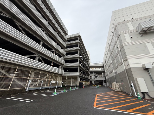 立体駐車場の1階に進み突き当たりで右折し、外に出て左折してすぐに左折すると立体駐車場側面に並んでます。文書と写真改訂2