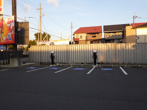 EV用普通充電設備は、R170・大阪外環状線から敷地に入って左側の洗車機奥(左側)の駐車スペースに設置されています。
