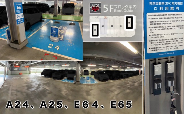 立体駐車場の5階の「A24・A25」と「E64・E65」の車室にあります。