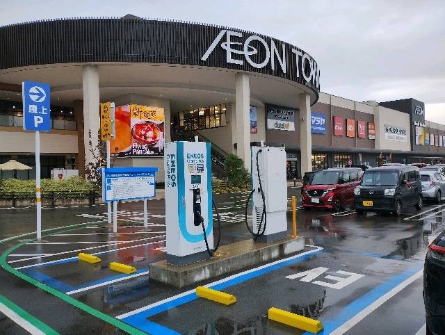 イオンとハンズタウンの中間付近の駐車場店舗寄りにあります。 エネオスチャージプラスとイオンの組み合わせですが、WAONは10分495円のタイプです。