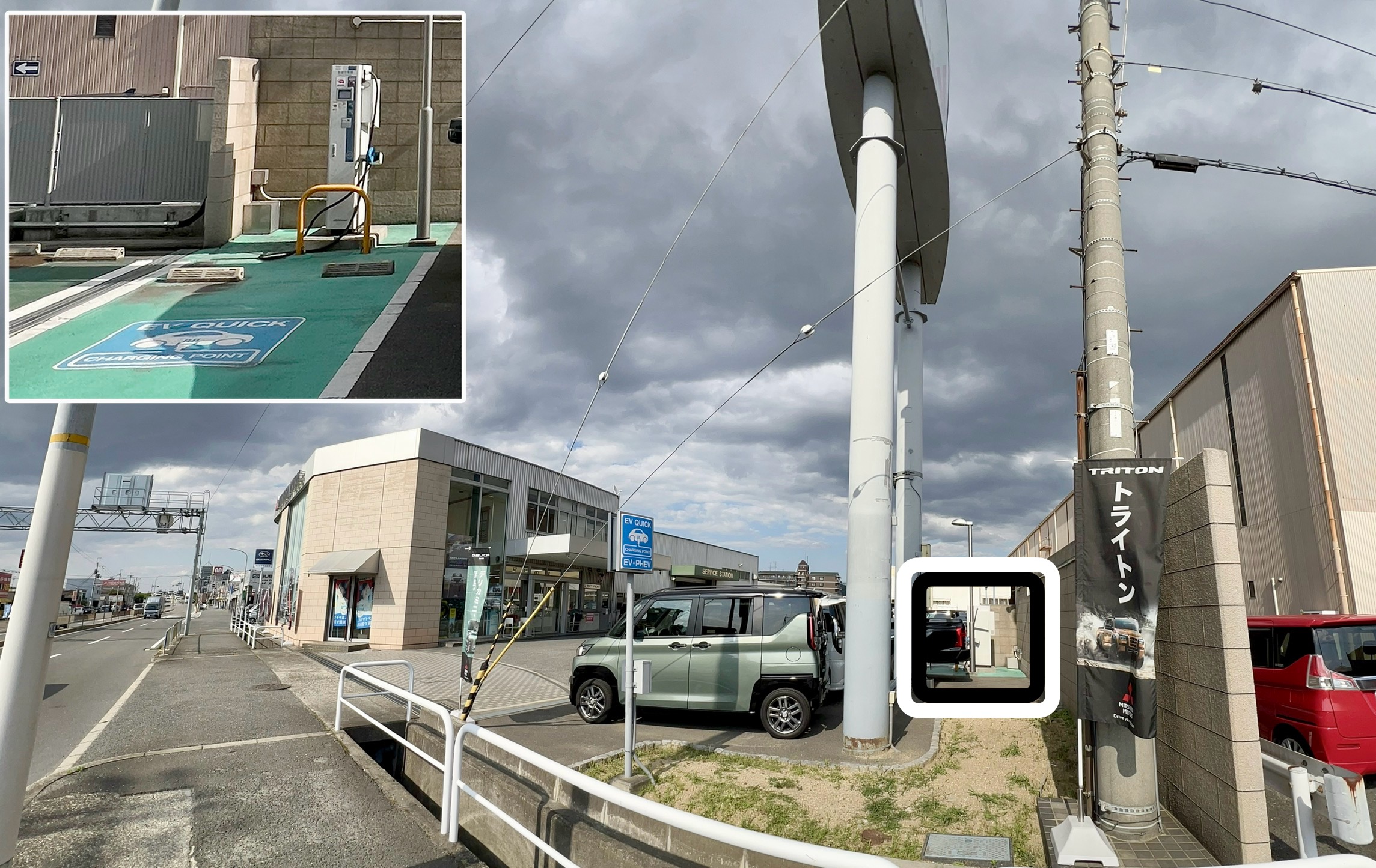 24時間利用可能な急速充電器が1基設置されています。NCS準拠です。 使い勝手はかなり悪く、アウトランダーPHEVの場合は前から入れても後ろから入れてもコードが届きません。仕方がないので横で入れましたが、店舗が営業してないときは駐車場内にチェーンがかかり車の切り返しをする動作が制限されます。 また、横に停めると営業時間中は隣のお客様用駐車スペースを塞ぐことになります。