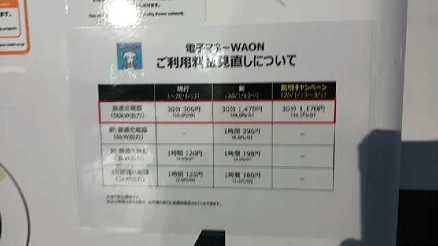 [急速充電器] 2015/12/01よりNCS(現eMP)スポットとして運用。 [普通充電器] 2015/12/01よりNCS(現eMP)スポットとして運用。 【ビジター料金やeMP未加盟充電器の情報等】 ◆WAON認証の場合 [急速充電器] WAON(充電1回30分300円(税込))。 [普通充電器] 2020/02/26より充電有料。 WAON(充電1時間120円、2時間240円、3時間360円(税込))。 eMP提携充電カードで支払いの場合はご利用の料金プランに準じた金額になります。