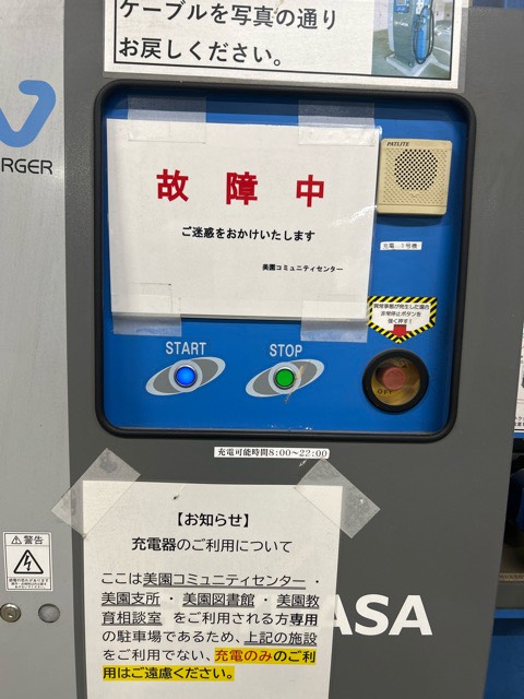 急速充電機は直す気配もなく故障中でしたが、普通充電機も故障、利用不可になっていました。