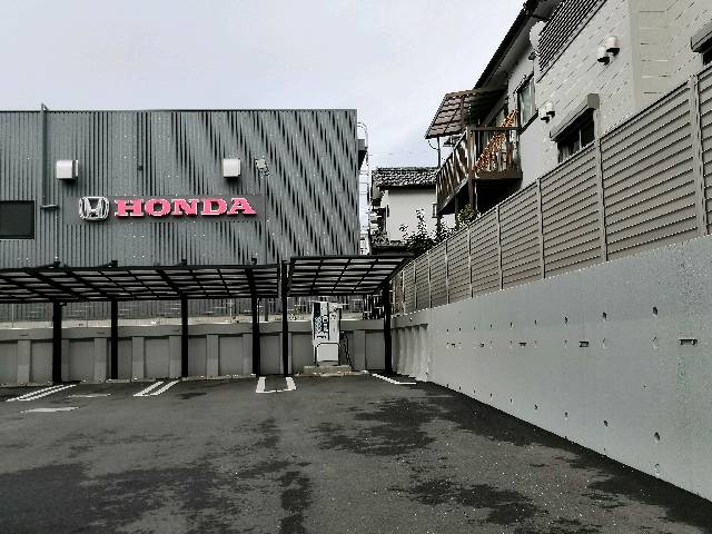 信号を曲がって建物の裏へすぐ左折です。 幹線道路沿いですが24 Hではありません... ディーラー車が止めてあるので利用するには一々移動を依頼する必要があります。 継ぎ足し充電で150 kWだと 充電時間と移動していただく時間が大して変わらなくなり 使う気が無くなります