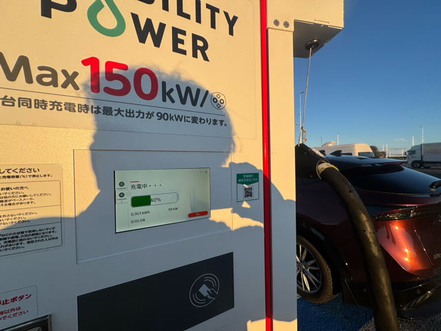150kWの充電器(2台同時に充電可)と90kWの充電器(2台同時に充電可)が1基ずつあります。 ★データチームより★ 最大出力150kW、90kWは、お車が対応しており、かつ1台で充電した場合の参考値です。