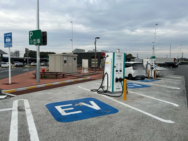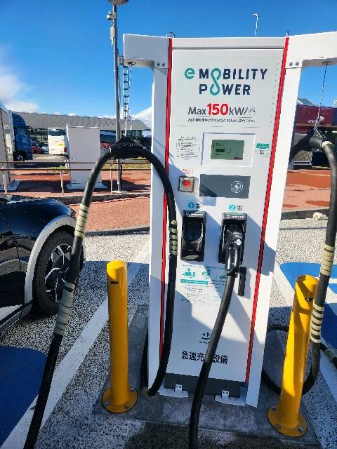 150kWの充電器(2台同時に充電可)と90kWの充電器(2台同時に充電可)が1基ずつあります。 ★データチームより★ 最大出力150kW、90kWは、お車が対応しており、かつ1台で充電した場合の参考値です。