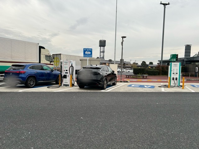相変わらずの人気の充電スポットです。東京まであと少しってところで充電足りなくなりそうな場合立ち寄りやすいですね。トイレと自販機だけあればOKって人におすすめです。入り口を通り過ぎてしまったら戻れないので慎重に進入したほうがいいです。