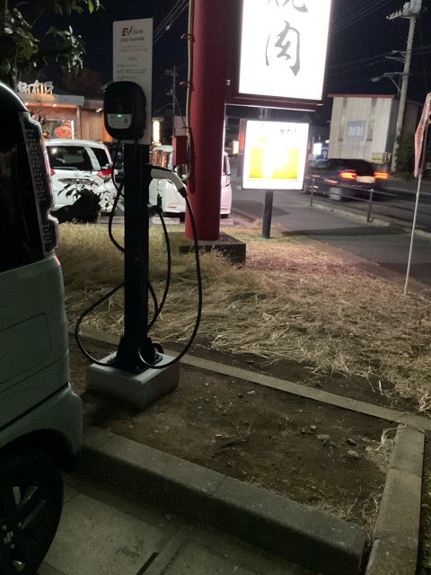 店舗 駐車場 角に急速充電器があります。
