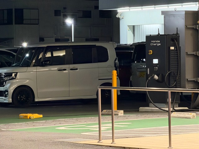 店舗敷地に入って右側の障害者駐車場の隣に設置してあります。外観がHonda Chargeに変わっていますね。あまり使う人いない感じがします。穴場といえば穴場ですね。草加あたりから川口方面の首都高に乗る時などによりやすいですね。予約もできますし。