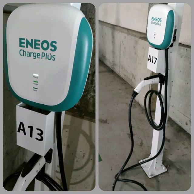 この施設はシステムの都合上、(1)~(4)に分かれて登録されています。 -------------------- 設置場所:平面駐車場H1 充電6時間までの範囲で選択可。 ENEOS Charge Plus会員の場合、最大出力6kW
