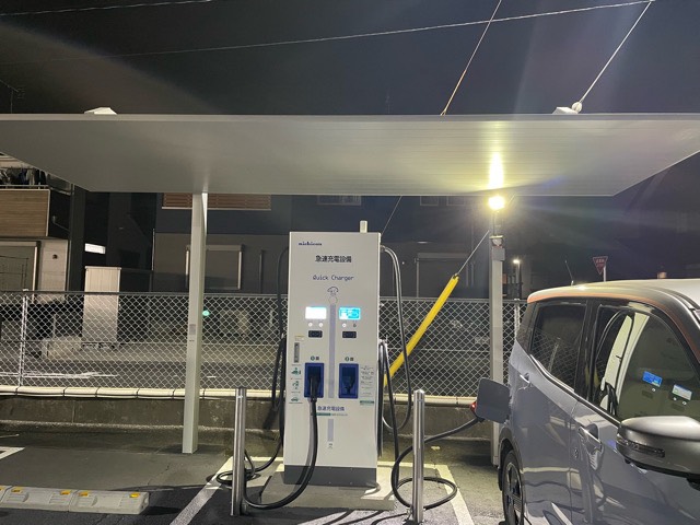 新型に更新されました。充電器上は屋根もあります。 インフラの更新維持管理をしっかりやって、24時間開放している日産には感謝です。