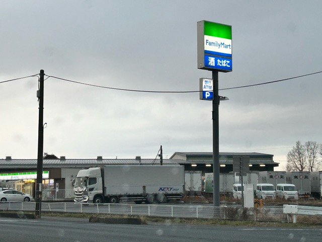 ファミリーマートの大きな看板の下、店舗北側に設置されていました。e-Mobility PowerHPによると、ダイヘン製50kw急速充電器のようです。e-Mobility Power系カード、ビジターの場合はe-Mobility Powerアプリまたが充電器貼付けのQRコードから55円/分〜利用できます。