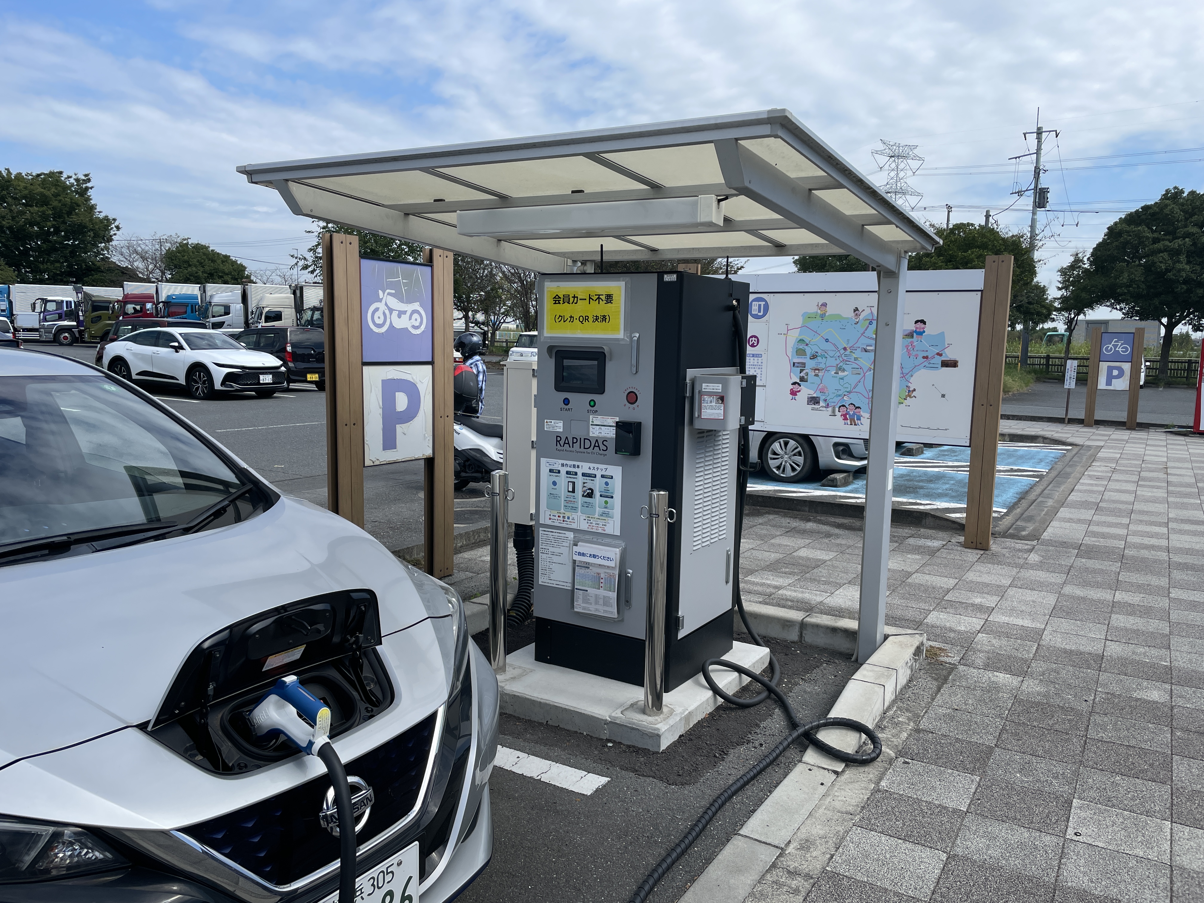 何度か利用していますが、いつも空いていて有り難いです。充電カードを使用しないタイプで、クレカかQRコードで決済です。従量課金なのも少量充電には好都合です。新鮮な野菜と果物も購入できます。