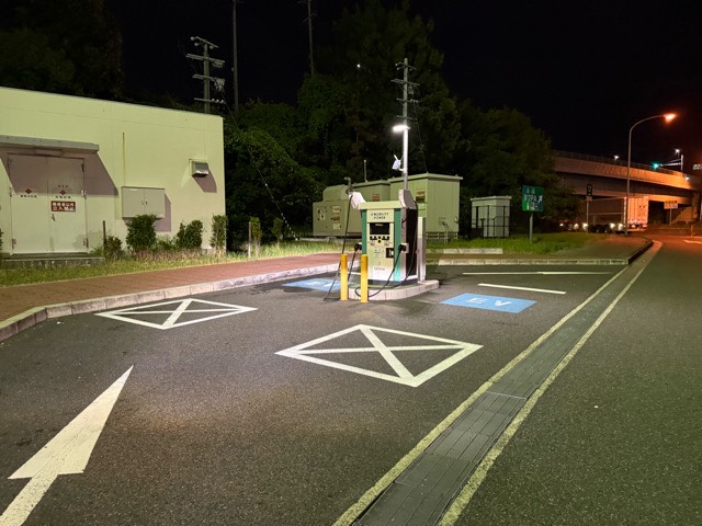 • パーキングのさらに奥の第2PAのトイレの建物の右側で、出口の手前にあります。文書と写真改訂2 充電後に、さらに仮眠したい場合の止めるところがありません。出口のところなのですこし騒がしいとは思いますが、出口手前にスペースがあります。車室の線を引いて充電後のスペースとしてほしいと思います。