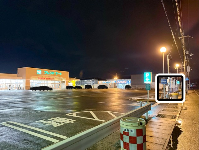 大通りから見て左側(北)のスギ薬局近くの出入り口のすぐ右側あたりです。