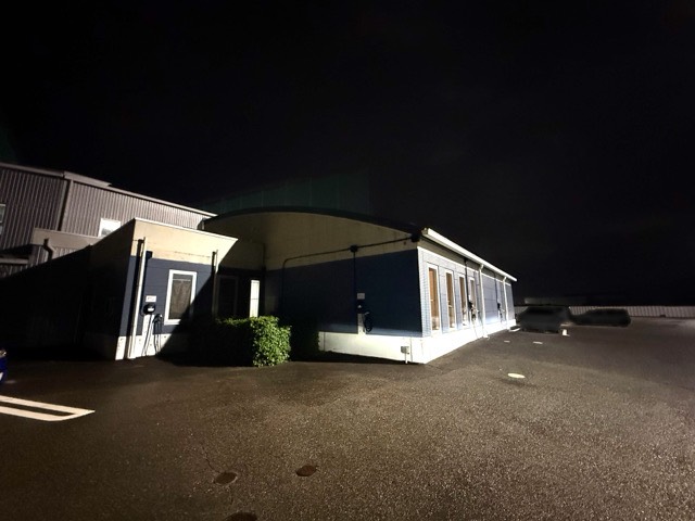 駐車場入って右奥にあります。変電設備の後ろにあるので少し見ずらいところに、急速充電器があります。 eモビリティ系カードとビジターもQRコードで対応となってます。 受付不用、24時間対応となってます。