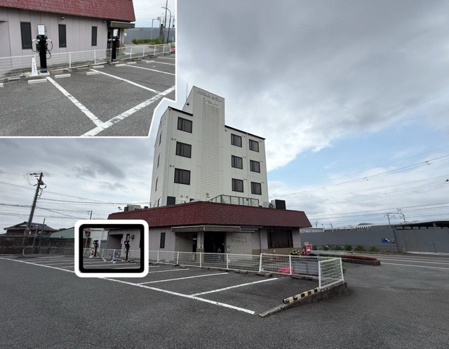 設置場所:ホテル駐車場出入口の左側の車室にEV充電器があります。 どなたでもご利用いただけます。 最大出力6kW